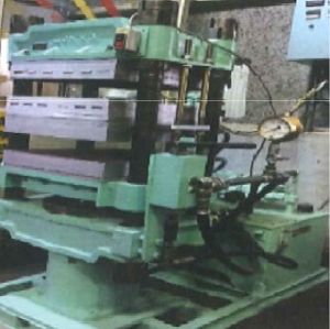 前樹脂の混入及び、その他異物の有無を確認するためパンケーキ(プレスシート)を作成する装置。